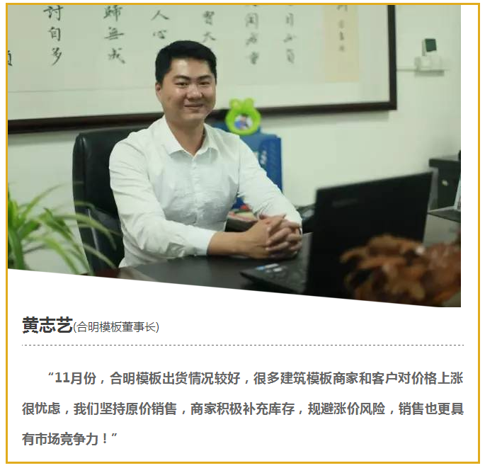 11月,在膠水原材料連續(xù)上漲、物流限載、匯率強震等多重不利因素下,建筑模板上漲趨勢明顯,多數(shù)建筑模板廠商紛紛調高單價,上漲幅度2-5元/張。