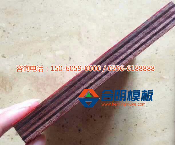 與其他種類模板不同的是,合明苯酚板除了芯板滾足酚醛膠,上下面板也各滾一層足量的酚醛膠,這層酚醛膠是合明膠水廠特制膠水,比其他三聚氰胺膠和脲膠膠性更強(qiáng),防水防腐,在混泥土和模板中間起到隔閡作用,防止泥沙雨水侵入保護(hù)模板,使模板更耐用。