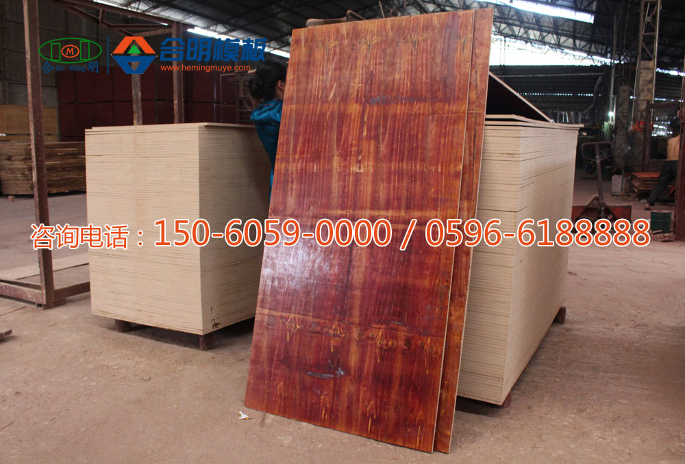 合明苯酚模板,是上下表面各滾一層合明特制酚醛膠的建筑模板。合明苯酚板經(jīng)過(guò)滾芯板膠,排板,冷壓,滾面板膠,熱壓等十幾道工序形成。
