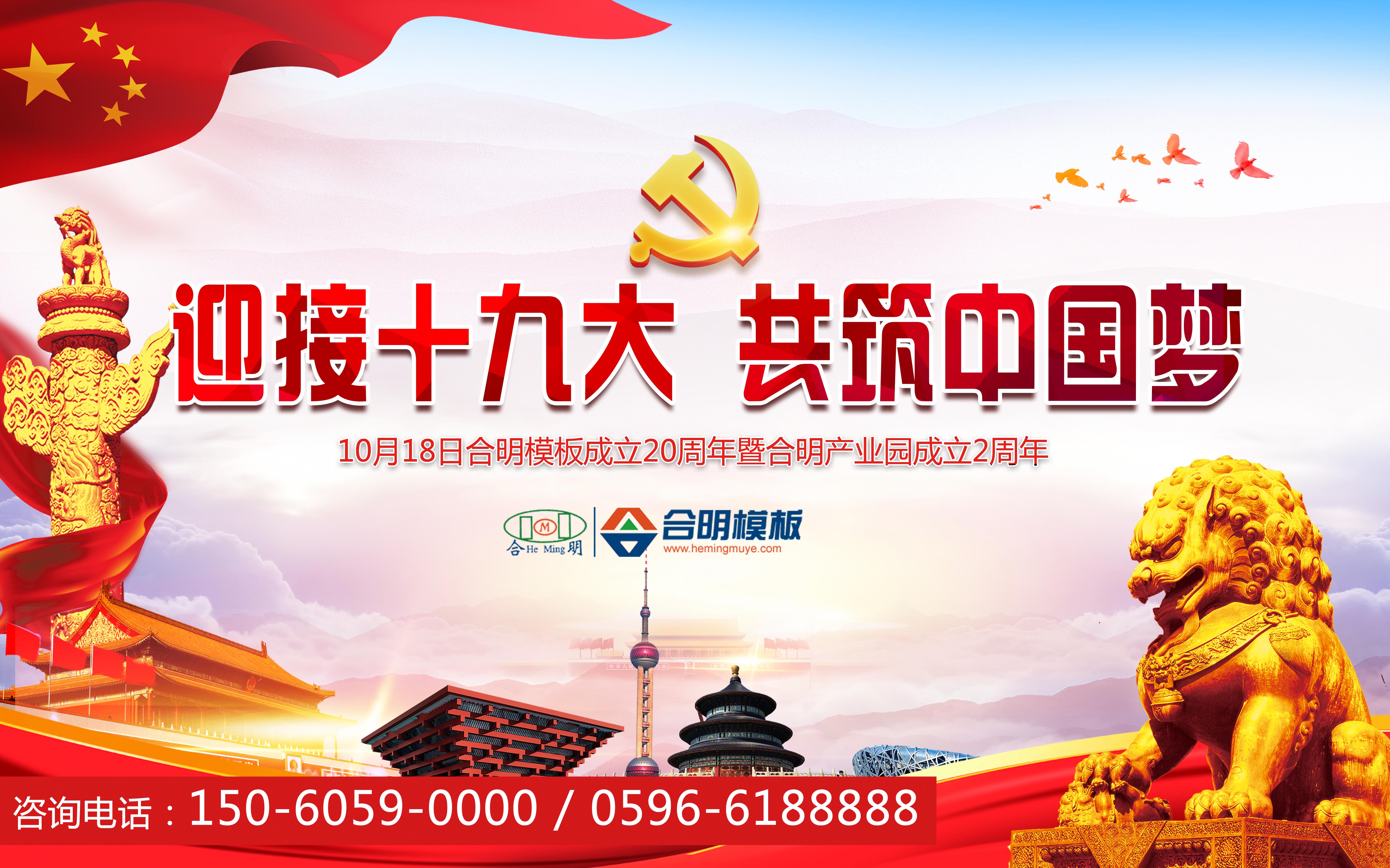 2017年10月18日,正值合明產(chǎn)業(yè)園成立2周年,暨合明木業(yè)公司成立20年周慶日。借此重大喜慶節(jié)日,祝賀中國共產(chǎn)黨十九大的勝利召開!祝賀祖國繁榮富強!國強則民富,合明模板也將以飽滿的熱情和昂揚的精神,堅定圍繞在十九大政策方針下奮斗不止,爭創(chuàng)新業(yè)績!