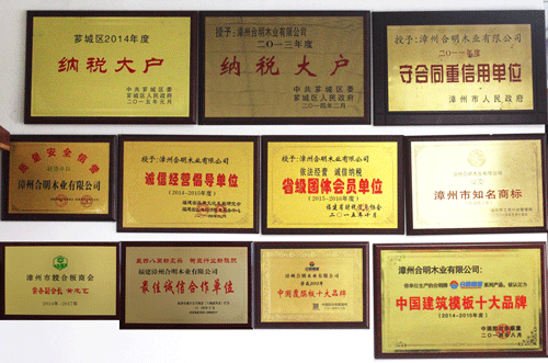 目前合明牌建筑模板已通過(guò)ISO9001質(zhì)量管理體系認(rèn)證,并獲得“中國(guó)知名品牌”、“中國(guó)建筑模板十大品牌”、“中國(guó)覆膜板十大品牌”等榮譽(yù)稱(chēng)號(hào)。合明木業(yè)規(guī)模宏大,管理規(guī)范,誠(chéng)信經(jīng)營(yíng),連續(xù)多年被認(rèn)定為“納稅大戶(hù)”,并被評(píng)為“依法經(jīng)營(yíng)誠(chéng)信納稅單位”、“誠(chéng)信經(jīng)營(yíng)倡導(dǎo)單位”、“質(zhì)量安全信譽(yù)單位”、“最佳誠(chéng)信合作單位”等。合明企業(yè)和產(chǎn)品受到廣大用戶(hù)及社會(huì)各界的大力認(rèn)可,充分說(shuō)明了合明良好的行業(yè)口碑及強(qiáng)大的企業(yè)實(shí)力。