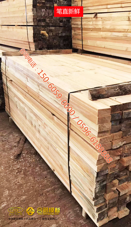 合明建筑方木新鮮筆直,質(zhì)地厚實(shí),韌性十足,兩人使勁踩不壞,廈門交通軌道等眾多建筑工地使用。